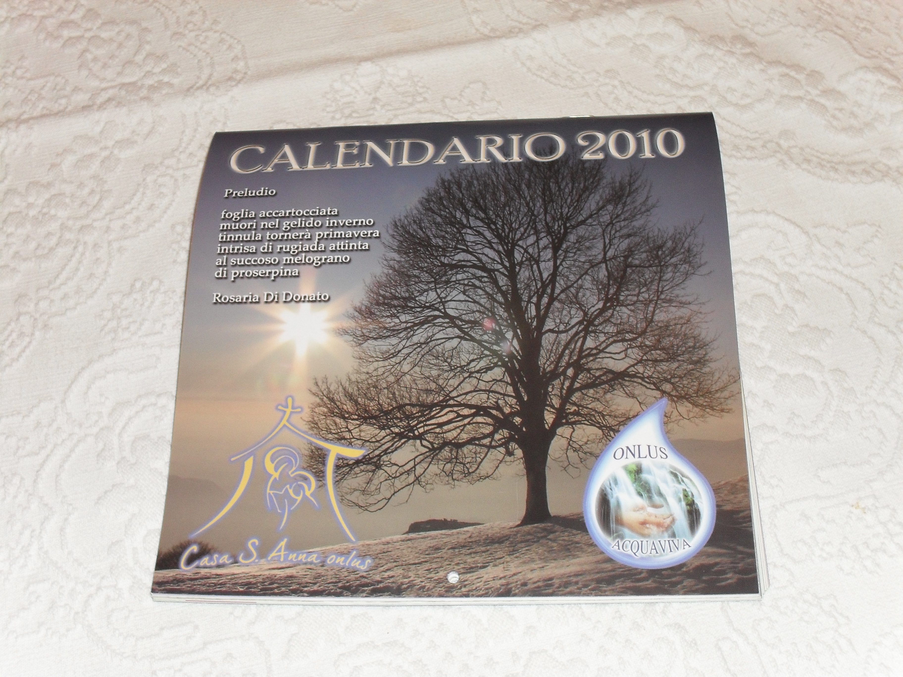 Per volontà di Don Vittorio Bernardi il calendario, realizzato da Bruno, Cristina e Rosaria, promuove la poesia di autori contemporanei. Quest’ anno propone due testi poetici per ogni mese affidando alle piante la suggestione delle stagioni e del tempo che passa. Sfogliandolo potrai leggere: Francesco Tomada, Lucianna Argentino, Maria Gisella Catuogno, Rosaria Di Donato, Maria Monaco, Jorge Luis Borges, Fernanda Ferraresso, Attilio Bertolucci, Elisabetta Robert, Marco Scalabrino, Abele Longo.
