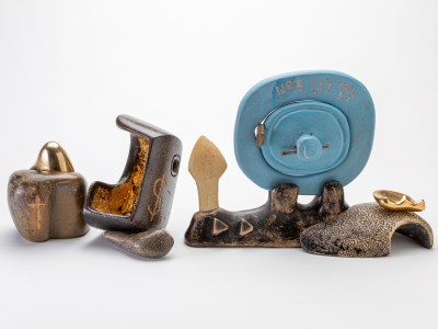 3. Queste belle terrecotte che dici tane o ripari a me sembrano anche visceri, la prima può essere un cervello e frammenti di ossa con graffiti oracolari, la seconda sono indubbiamente intestini, nella terza c’è un cuore rosso, o è una milza, su tutti aleggia il fantasma del « corpo unitario », che tutto questo sia un riparo.