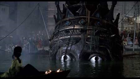 Nelle sue richieste Fellini si sofferma in particolare su due scene, la prima è quella del rito lagunare all’inizio del film, che sembra sostituire “lo sposalizio col mare”, che il doge celebrava nel giorno dell’ascensione, gettando un anello d’oro nella laguna. Venezia è impersonata da questa testa monumentale di donna che sorge dalle acque e poi vi sprofonda. Si presenta da subito il tema della donna, che percorre tutto il film, la donna ha sempre una dimensione di alterità, gli uomini sono uomini, magari con un po’ di cipria e qualche stranezza, la donna invece non è naturale, volta a volta è un idolo, una gigantessa, una grande balena e alla fine anche un’automa, è la rappresentazione di come Fellini vuole che Casanova veda la donna.