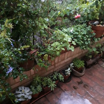 Piove sui rami d’ulivo, su la tensione della mimosa elastica sulle foglie profumate di geranio e sui petali di rosa aperti sul limone e sul ciliegio sulle piante grasse vicine aderenti e belle sul verde del pitosforo sui fiori lilla e sul pavimento che accoglie sui vetri che risuonano la pioggia che balza, sui tetti … More Monica Baldini: Piove